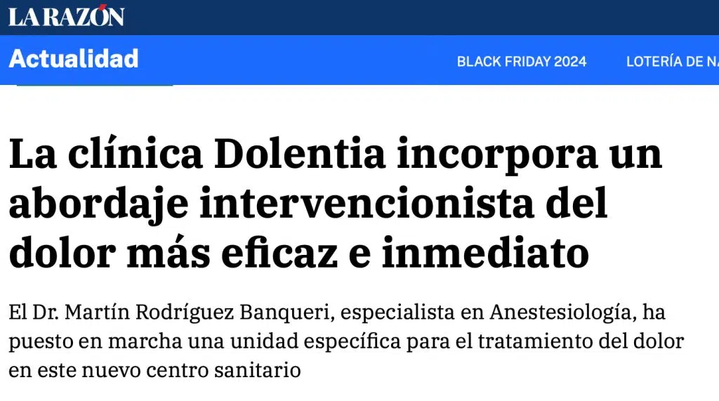 El artículo de La Razón subraya cómo la Clínica Dolentia se ha convertido en un referente en el manejo del dolor gracias a su método intervencionista. Este enfoque se diferencia de los tratamientos convencionales al priorizar procedimientos como infiltraciones, bloqueos nerviosos y radiofrecuencia, que actúan directamente sobre la causa del dolor.